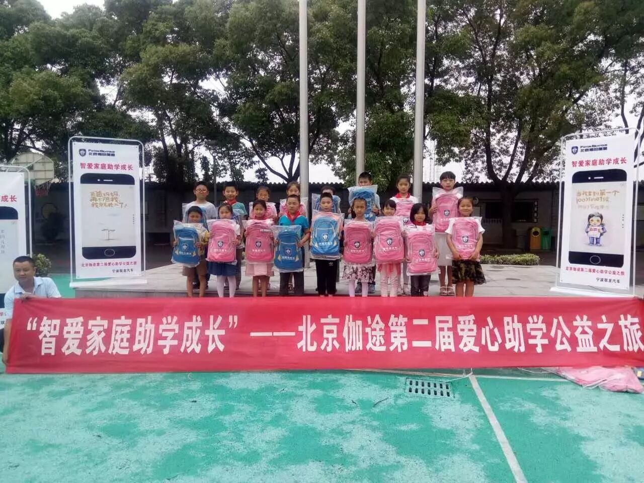6月1日浙江宁波,福田乘用车向江北区红梅小学捐赠书包文具