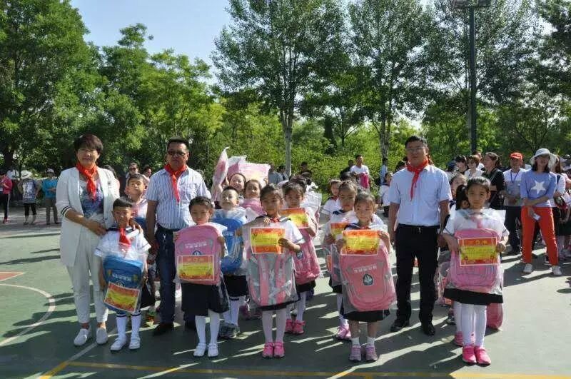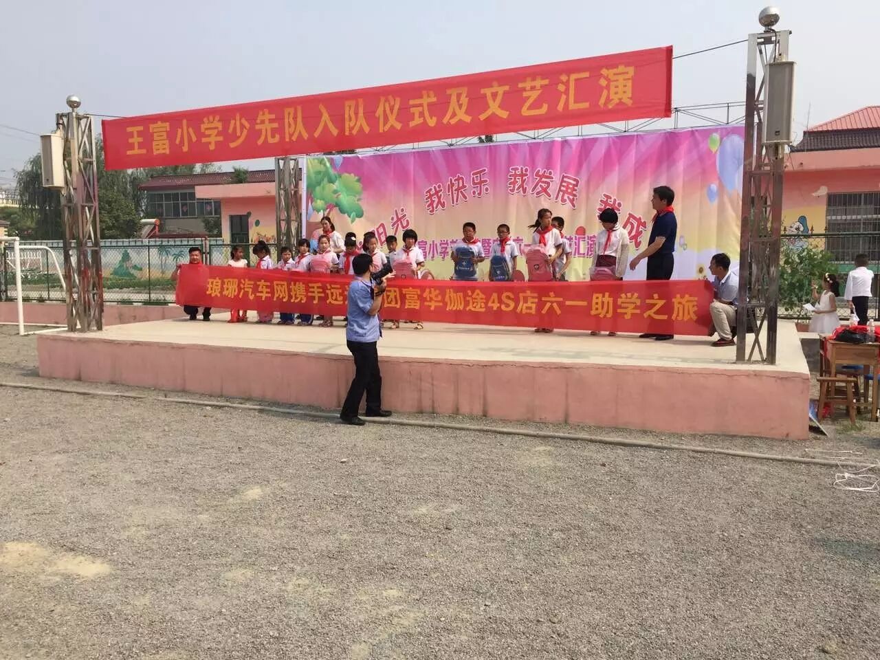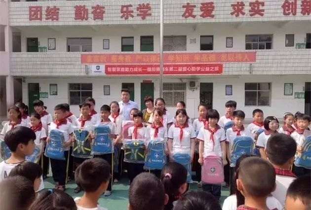 6月1日河南新乡,福田乘用车为关堤乡大介山小学学生带去了书包、文具盒、图书、笔记本等学习用品并鼓励一批批品学兼优的少先队员们 奋发图强